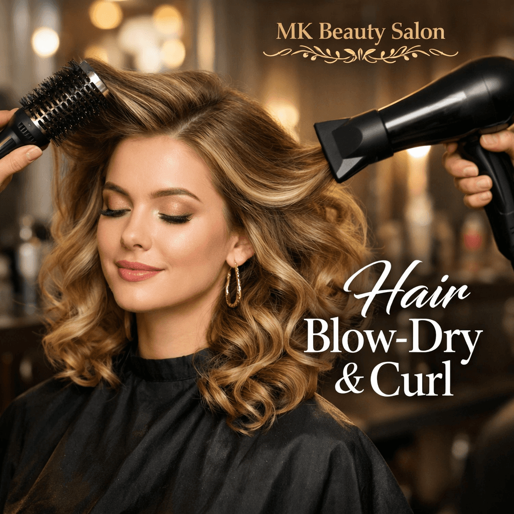 Get a flawless salon finish with our Hair Blow-Dry & Curl service. Includes a professional wash, volumizing blow-dry, and soft or defined curls tailored to your style. Perfect for everyday glam or special occasions.